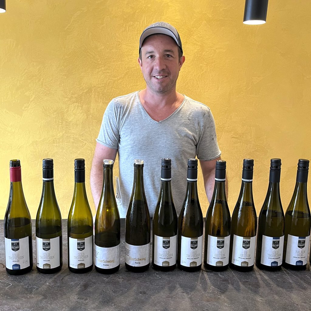 Själv studerade jag vingårdsteknologi och oenologi i Geisenheim, arbetade en tid på en vingård i Provence och tog sedan över vår gård från mina föräldrar 2006. Jag är nu den 28 generationen från Haart-familjen.